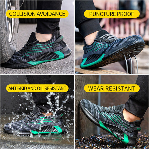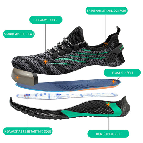 【Breathable Sneaker】: Abrasion-resistant mesh upper is fully breathable and the fabric lining has better moisture wicking performance.The safety shoes adopt athletic-inspired design which will never go out of style.